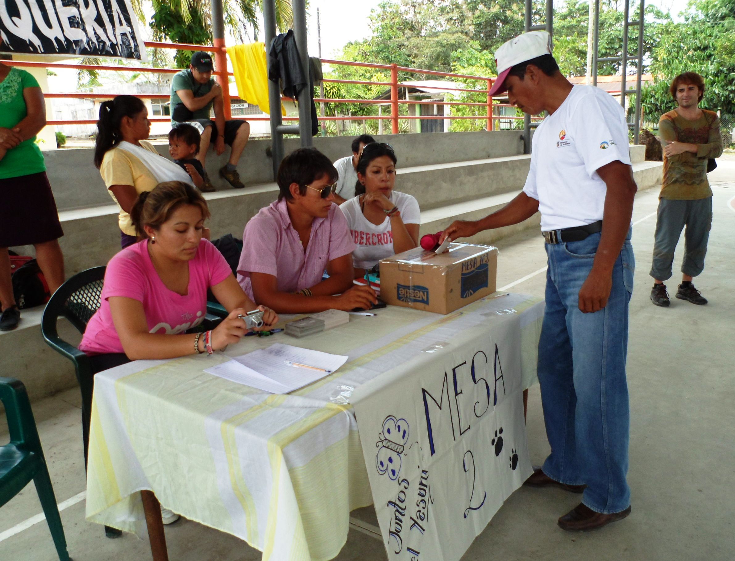 En este espacio se pronuncian habitantes de Nuevo Rocafuerte, autoridades y líderes de organizaciones sociales, “está es la primera consulta simbólica en defensa a la no explotación del petróleo en el Yasuni, lo que nos da como resultado que debemos seguir trabajando en este tema con más frecuencia en este sector” manifestó Samanta Maldonado vocera de Acción Ecológica.
