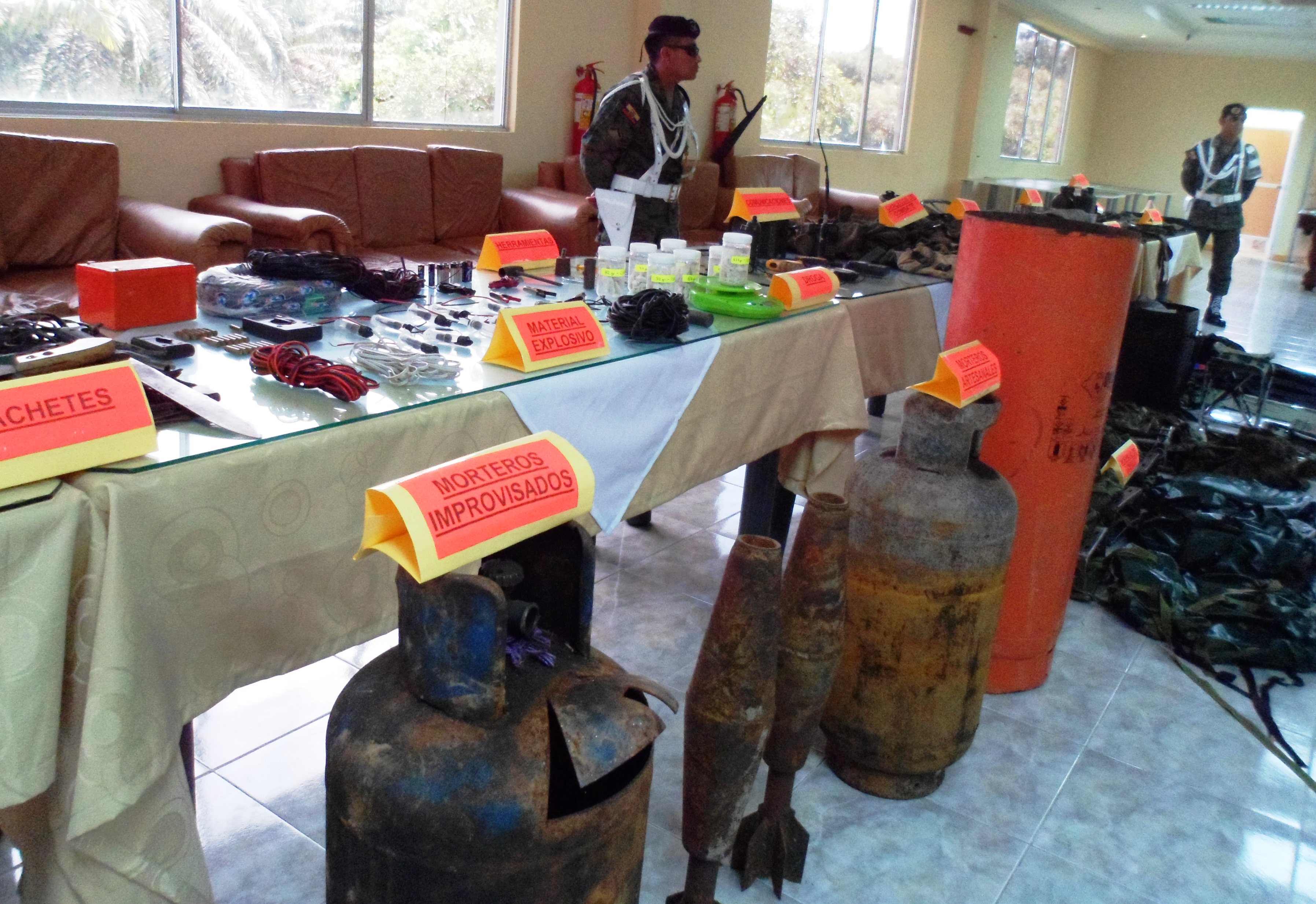 “Las unidades militares a diario hacemos operaciones terrestre, fluvial y aérea en los ríos y en toda la zona de frontera con Colombia, esto hizo que los grupos ilegales se sientan presionados y huyan abandonando estas pertenencias”, argumentó Juan Villegas, Coronel de Estado Mayor de las Fuerzas Armadas