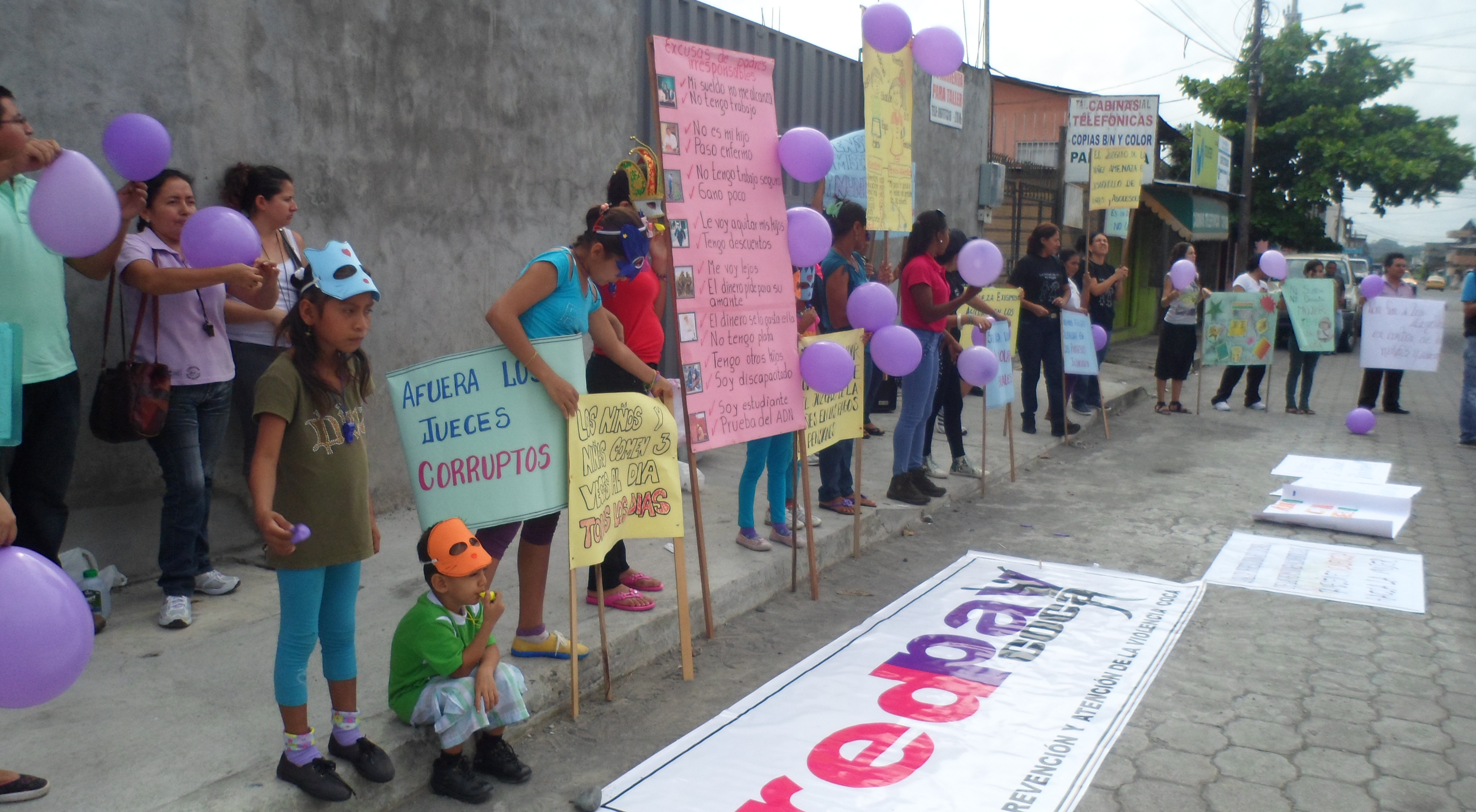 Niños/as padres/as y voceros/as de la Red de Protección y Atención de violencia, acudieron al planton a las afueras del juzgado de la niñez y adolescencia en Coca, este viernes en horas de la mañana exigiendo celeridad en los procesos y alza de pensión de alimentos a los niños/as.
