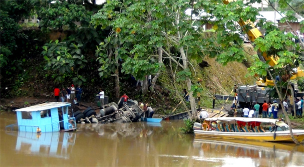 Por versiones de motoristas, el Cabo Walter Vargas de la Policía Nacional todo habría sido originado por una descoordinación entre el timonel de la gabarra y el conductor de la volqueta que finalmente originó el accidente.