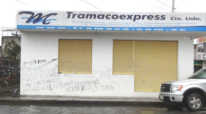 El sábado dos grafitis aparecieron en un céntrico sector de El Coca, aunque con incoherencias piden la renuncia tanto a la Gobernadora Dorix Cortés y a la Prefecta Guadalupe Llori.