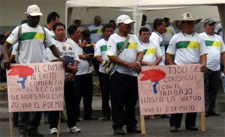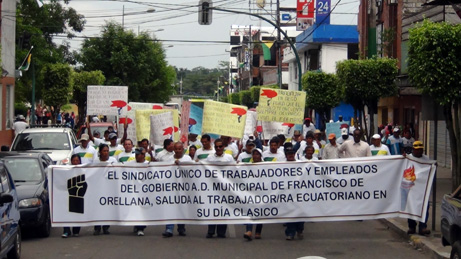 ada inició con una concentración en el Malecón. Fueron llegando de a poco. Los que hicieron mayor presencia fueron los del Sindicato Único de Trabajadores del Municipio de Fco. de Orellana, en menor número del Gobierno Provincial y una que otra delegación, como la de los artesanos.