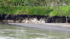 En el trayecto fue notorio el impacto del paso del petróleo vertido en la vegetación localizada en la orilla del río Coca, desde la Planta de Agua hasta la desembocadura en el Napo. En tanto, en comunidades ribereñas como Pompeya y El descanso hay sitios donde aún se divisa las secuelas del paso de la mancha en el Napo.