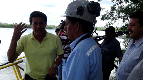 El alcalde Ureña reclamó en fuertes términos al Ing. Manobanda de Petroecuador por la poca respuesta en la limpieza de la vegetación contaminada y sobretodo la falta de agua en bidones que se ofreció a los pobladores ribereños.