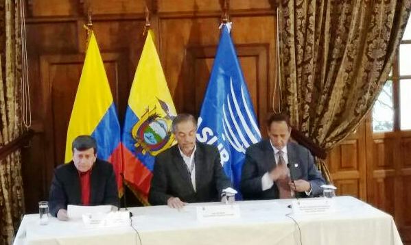 Quito, febrero 16.- En el Ministerio de Relaciones Exteriores, los jefes de las delegaciones del Gobierno de Colombia y del Ejército de Liberación Nacional (ELN), Juan Camilo Restrepo y Pablo Beltrán, respectivamente, hicieron un balance de los avances de las ne