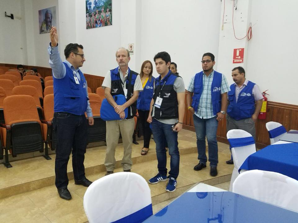 El Coca, febrero 3.- A pocas horas de la Consulta Popular convocada para el domingo 4 de febrero, la delegación del CNE-O recibió la visita de dos observadores internacionales, Luis Alejandro Chávez (Colombia) y Pablo García (Perú), ellos cumplirán su labor en Orellana como representantes de la Unión de Naciones Suramericanas (UNASUR), destacó Marco Tulio Restrepo, encargado de la delegación.