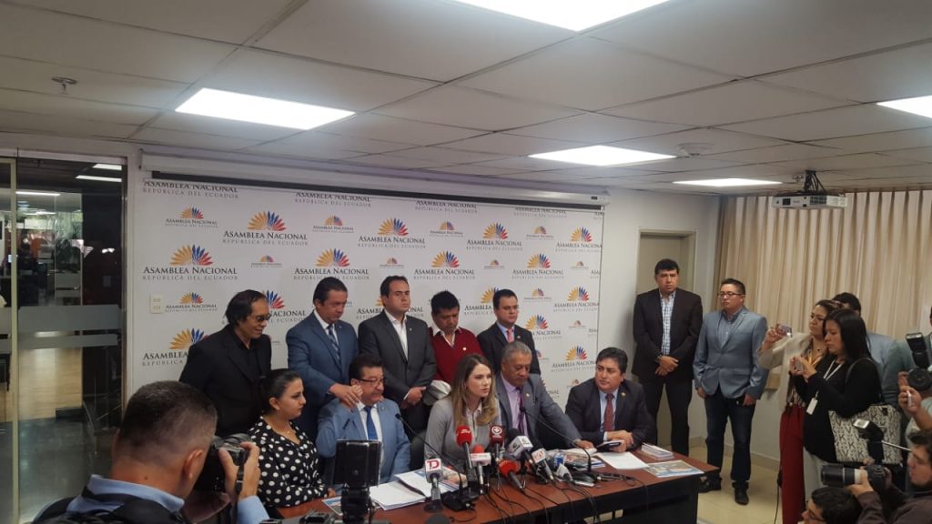 El bloque legislativo del movimiento CREO anunció la recolección de firmas para la solicitud de juicio político en contra de María Fernanda Espinosa, titular del Ministerio de Relaciones Exteriores, por incumplimiento de funciones.