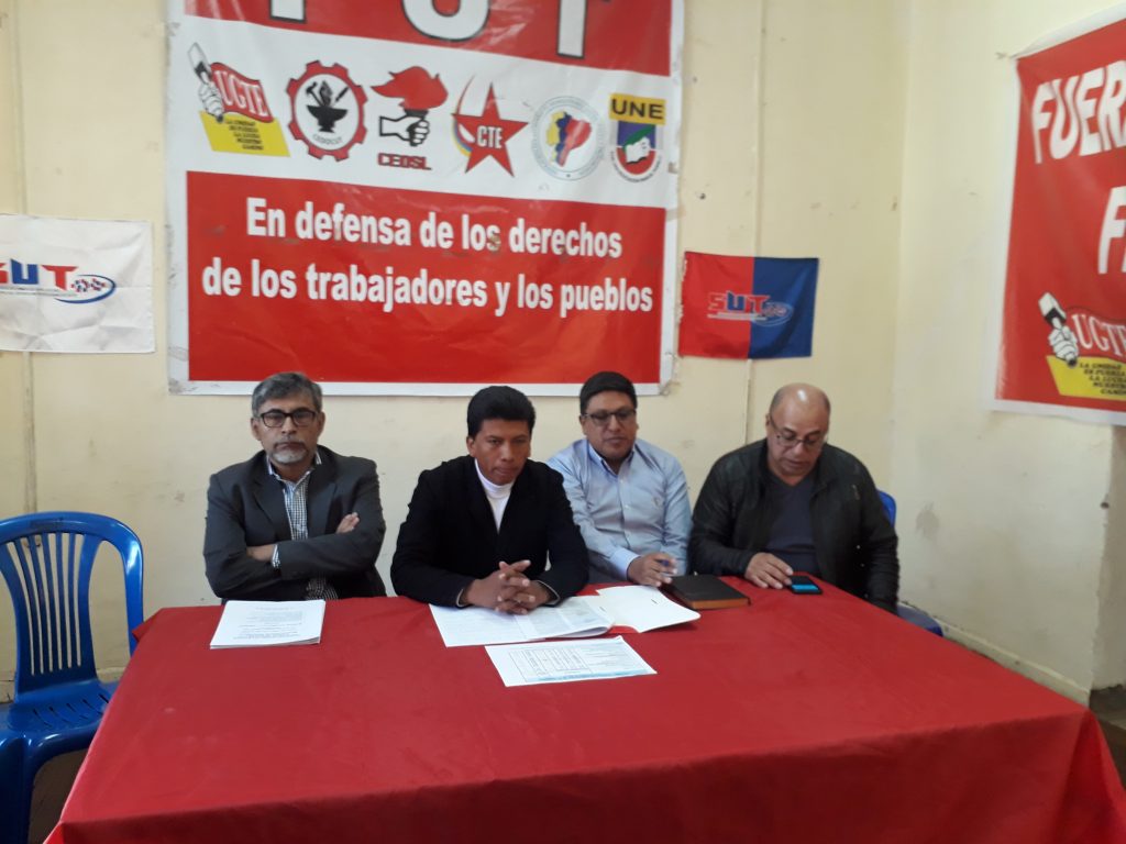 Los dirigentes del FUT, mediante una rueda de prensa realizada en la sede de la Unión General de Trabajadores del Ecuador, ubicada en las calles Arenas y Juan Larrea, dieron a conocer su posición frente a las medidas económicas implementadas por el Gobierno.