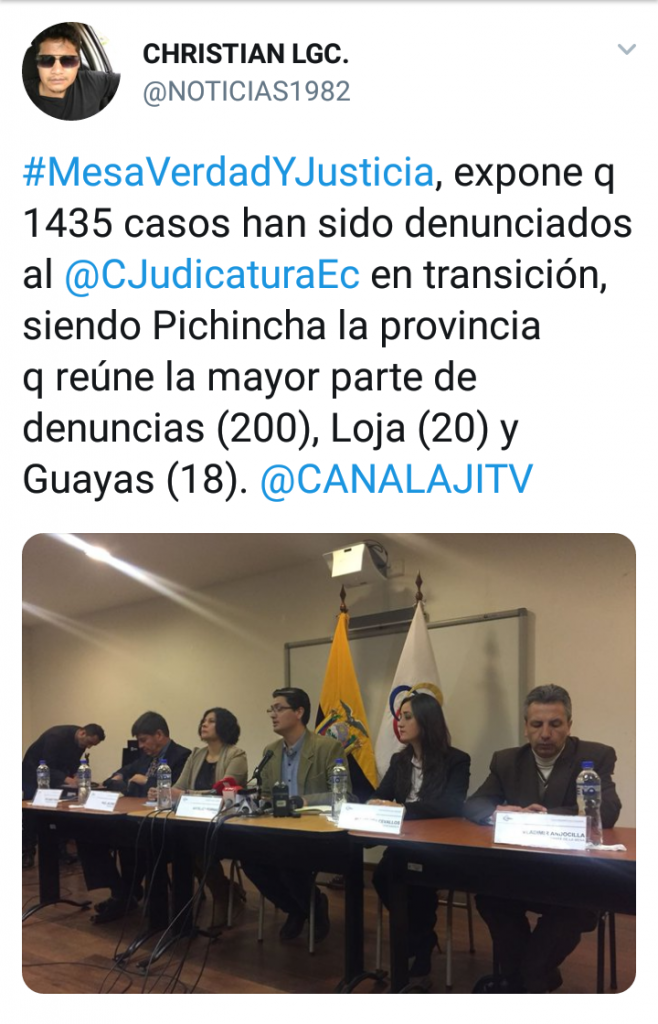 La Mesa instalada en la Facultad de Jurisprudencia trató casos como: Carlos Figueroa y Fernando Villavicencio, Caso Marcelo Rivera, Intag, Francotirador 30s, Gran hermano, Comunidad Valdivia, Tres de Cotopaxi y Fidel Araujo; casos que serán parte del primer informe que se expondrá en el mes de noviembre y el informe final en diciembre. CG