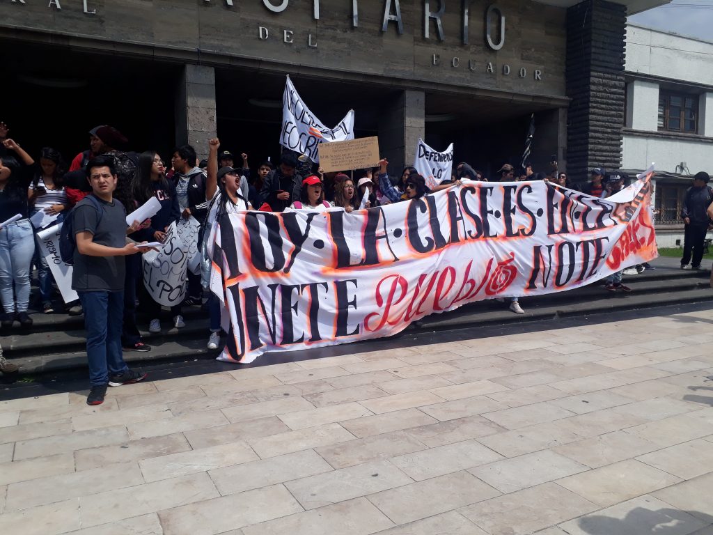 Pichincha, Quito- La mañana de este lunes 19 de noviembre, cientos de estudiantes de la Universidad Central salieron a las calles a protestar por el recorte presupuestario que disminuiría aproximadamente $ 145.1 millones en los ingresos de las universidades públicas.