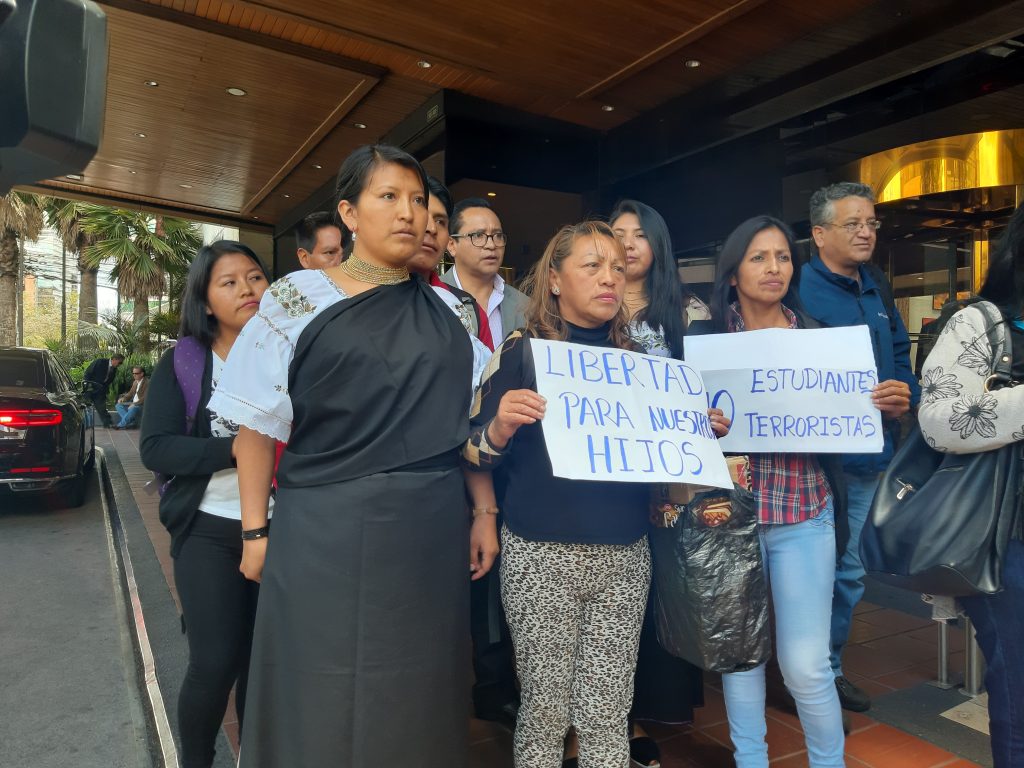 Alexandra Morales vicepresidente FEINE, señaló que el Gobierno se encuentra llamando al diálogo, sin embargo existirían demandas en contra de los dirigentes indígenas; tal como es el caso de Eustaquio Toala presidente de la FEINE que estaría siendo investigado por «paralización del servicio público»; sin que exista el debido proceso. Aseguró