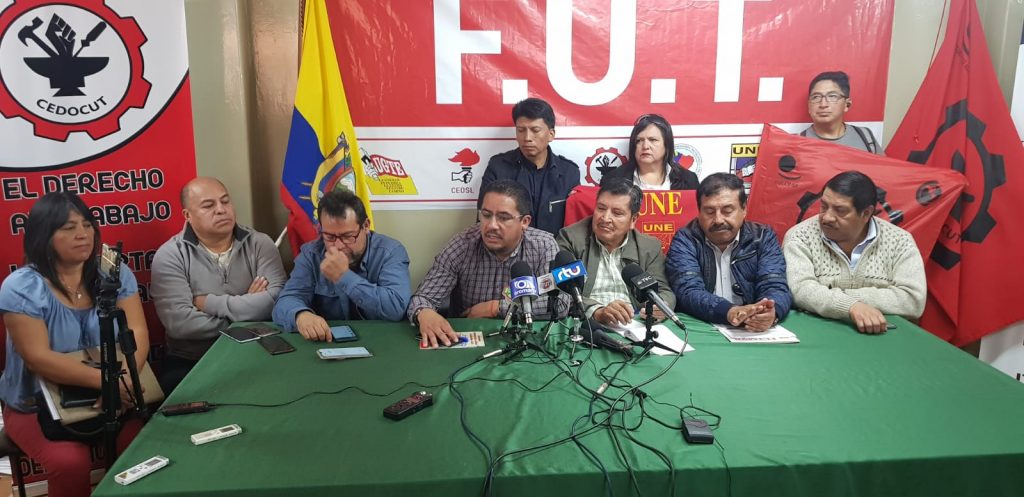 Mesías Tatamuez presidente del FUT, mediante una rueda de prensa realizada este martes 28 de enero, en las instalaciones de la CEDOCUT, ubicada entre las calles Flores y Manabí, al centro de Quito; dio a conocer su posición frente a las políticas emitidas desde el Ejecutivo.