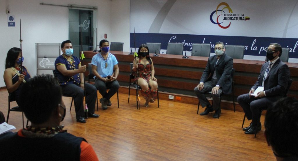 El Consejo de la Judicatura (CJ) recibió, este martes 29 de septiembre de 2020 a dirigentes de las comunidades indígenas amazónicas que solicitaron una acción de protección en contra del Estado y de empresas petroleras, por las afectaciones causadas en las riberas de los ríos Coca y Napo, a partir de un derrame de petróleo provocado por la ruptura de los oleoductos OCP y SOTE.
